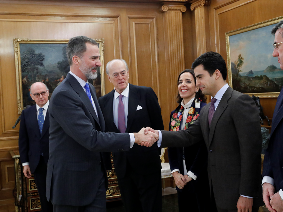 Madrid, 19 de marzo de 2018. La Junta Delegada de Gobierno de la Fundación Independiente ha sido recibida en Audiencia por su Majestad el Rey, Felipe VI. En sus palabras de agradecimiento, el Presidente de la Fundación, Aldo Olcese, destacó el sentir por su compromiso en la defensa de la integridad de la nación y del orden constitucional «en medio de grandes dificultades y profundas divisiones, en las que la Corona ha sido, una vez más, garante de la estabilidad y la concordia entre la inmensa mayoría de los españoles». Olcese anunció al Rey la constitución de la Asociación Nacional de la Sociedad Civil Ahora, que integrará en los próximos meses a más de 50 instituciones defensoras de la sociedad civil y sus derechos. La Fundación Independiente y Fundes han sido las promotoras iniciales de esta iniciativa. En los próximos seis meses otras instituciones de la Sociedad Civil se integrarán como miembros fundadores de SOCIEDAD CIVIL AHORA.