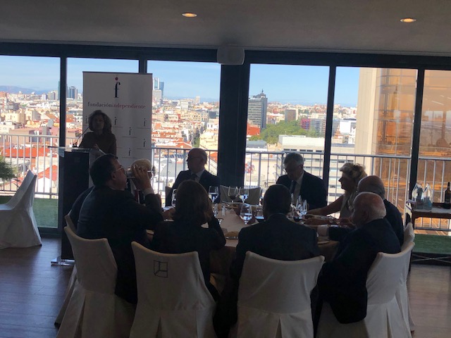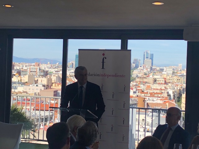 Madrid, 2 de octubre de 2019.- Eduardo Torres-Dulce -Fiscal General del Estado 2012-2014- y Consuelo Madrigal -Fiscal General del Estado 2015-2016-, fueron los invitados de la Fundación Independiente en la Tribuna celebrada el día 2 de octubre en el Club Financiero Génova. Fueron presentados por el presidente de la Fundación Independiente Aldo Olcese, quien les agradeció su presencia en la Tribuna para hablar sobre un tema que de gran interés para todos. “Los ciudadanos observan perplejos como los políticos tratan de pasar a la Fiscalía decisiones que corresponderían al ámbito de sus responsabilidades, además de tratar de utilizar los órganos jurisdiccionales como la Fiscalía en la confrontación partidista”. Con esta introducción Aldo Olcese aperturó el acto.